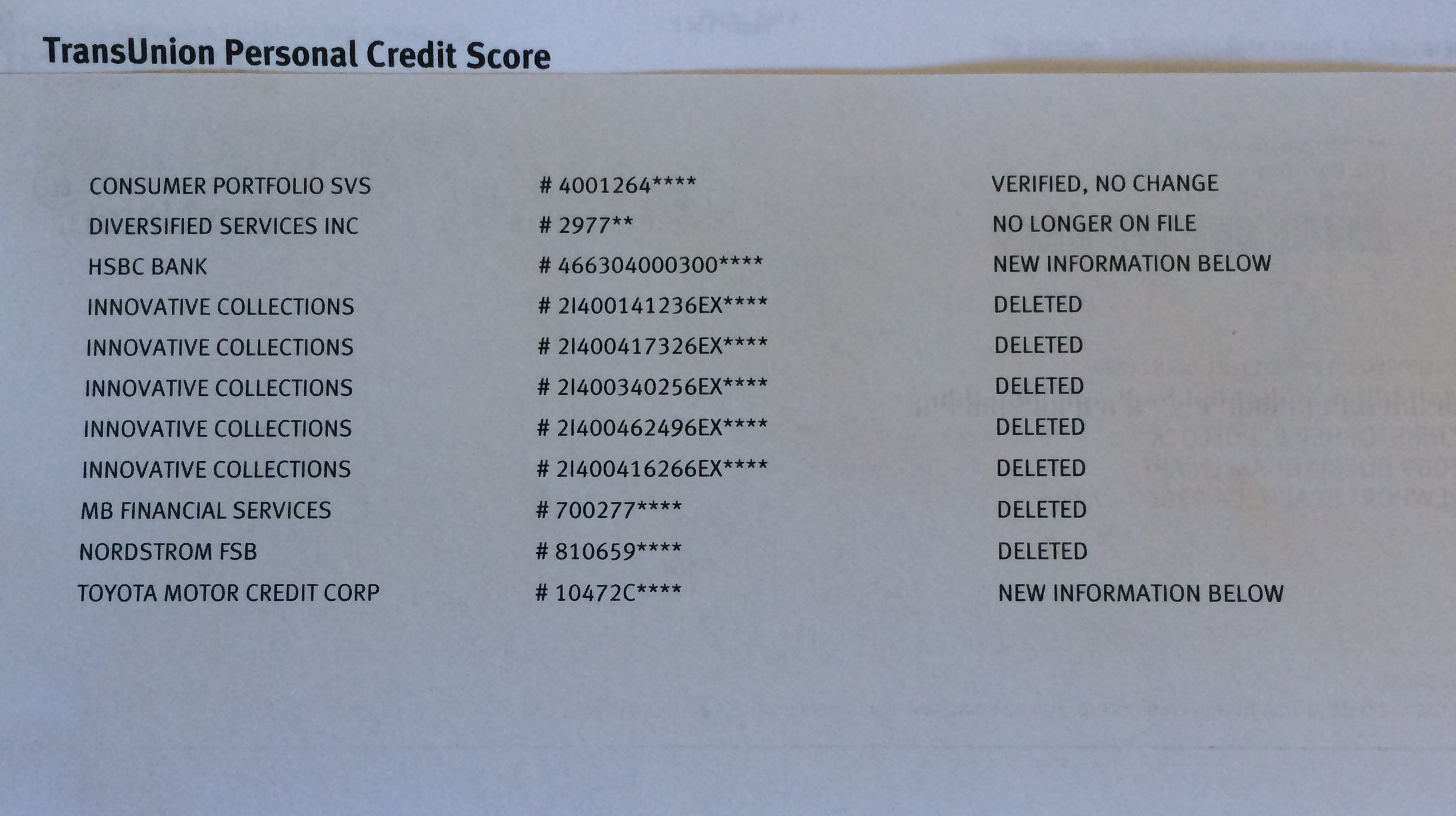 The study also examined whether consumers from the 2013 study, who had their credit reports modified after disputing information on their credit reports, had any of the negative information that had been removed subsequently reappear on their reports. The study found two instances of this, representing about 1% of these consumers.
